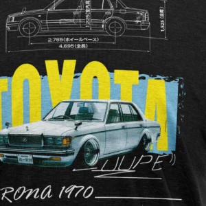 Se és fã de automóveis clássicos e apaixonado pela história da indústria automóvel, esta t-shirt estampada com o icónico Toyota Corona de 1970 é feita para ti!